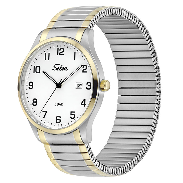 SELVA Quarz-Armbanduhr mit Zugband bicolor, Zifferblatt weiß Ø 39mm