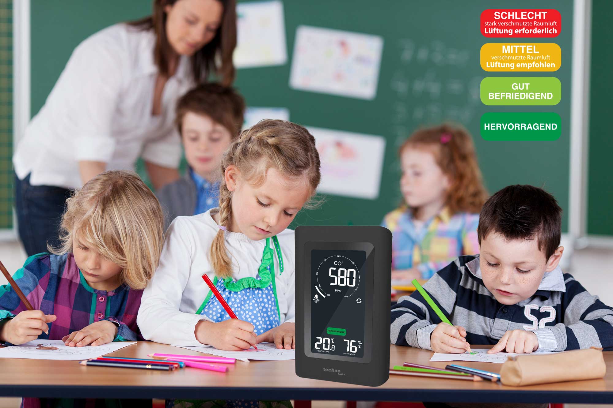 Unterstützung geben CO2-Messgeräte. Besonders für Räume, in denen sich mehrere Menschen aufhalten, sind solche Messgeräte empfohlen.
