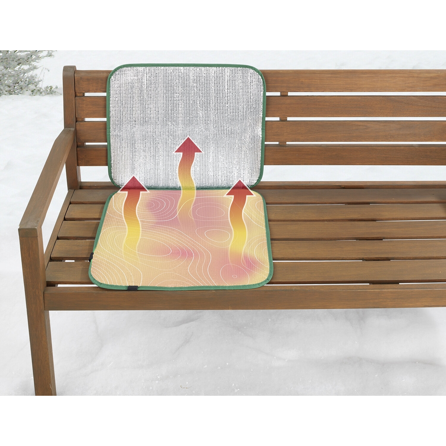 Maße: zusammengeklappt als Sitzkissen: 45 x 45 cm, aufgeklappt: 45 x 90 cm, gefaltet: 24 x 13 cm. Material: Unterseite: 100 % strapazierfähiges Polyester, Sitzfläche: 100% Polyethylen.