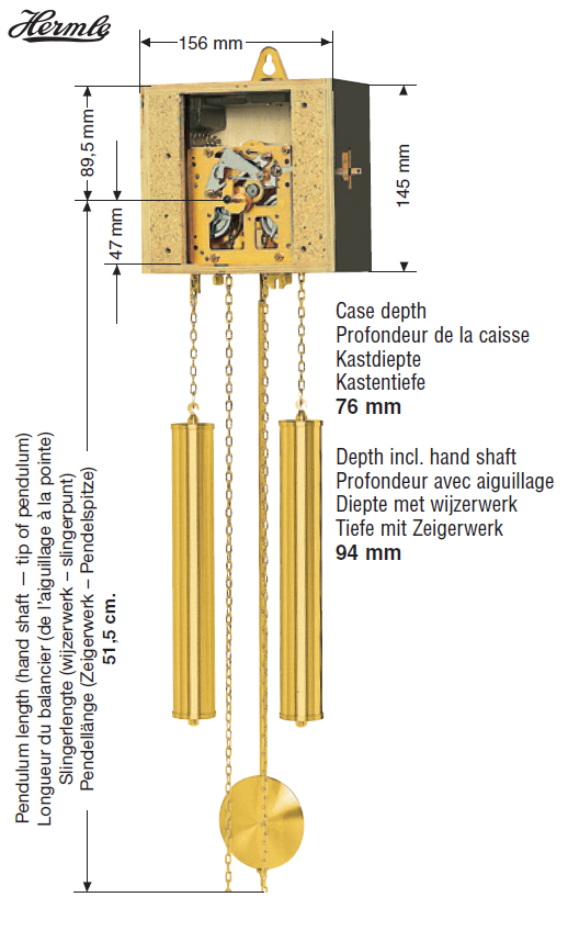 Produktinformationen "Heimuhrwerk I Hermle, 7-Tage, Pendellänge 51,5 cm, mit Bim-Bam-Schlag"