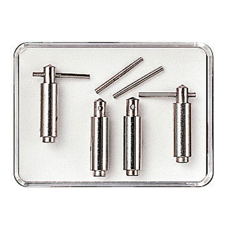 4 Pfeiler mit Ø 5 mm und Ø 3,5-mm-Ansätzen. Querbohrung für Vorsteckstift. Einschl. 4 Vorsteckstiften.