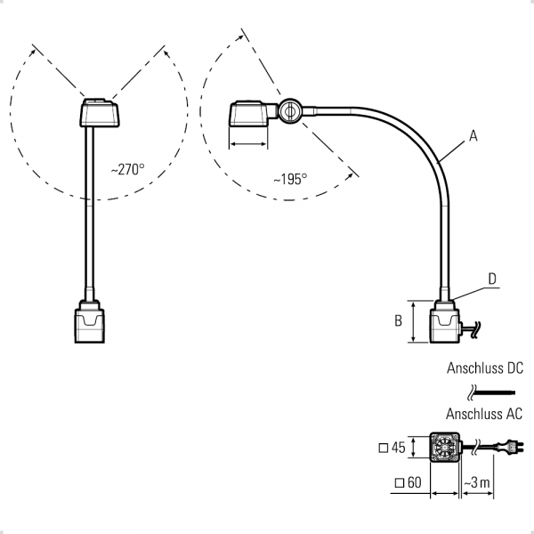 • Das Licht lässt sich durch den Schwanenhals stufenlos und exakt ausrichten