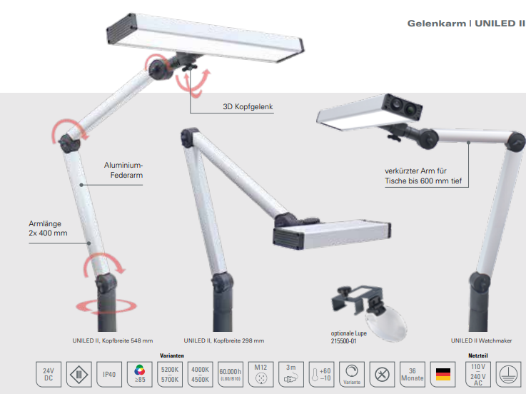 LED-Werktischlampe UNILED II Watchmaker "made in Germany".