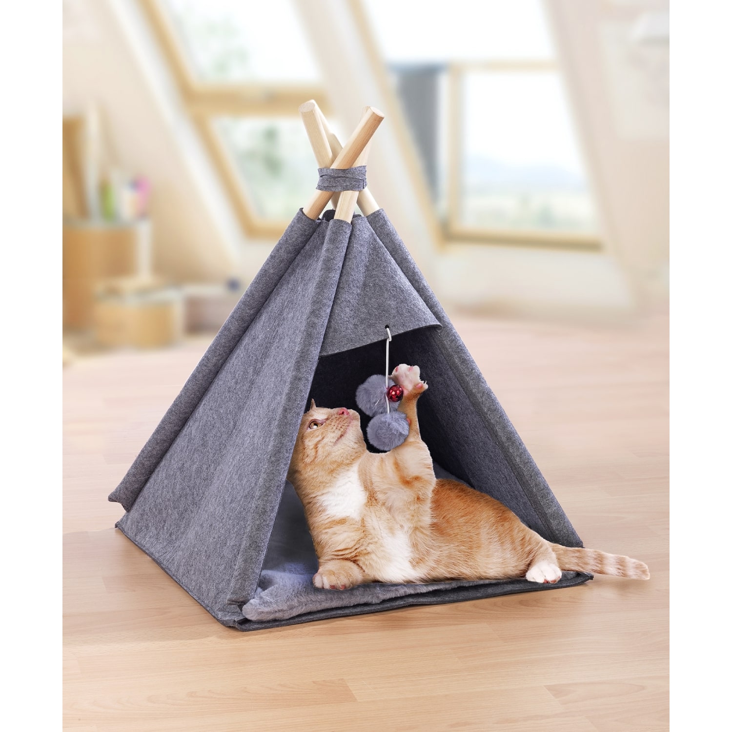 The easy-care felt tent offers pets a comfortable place to sleep and play