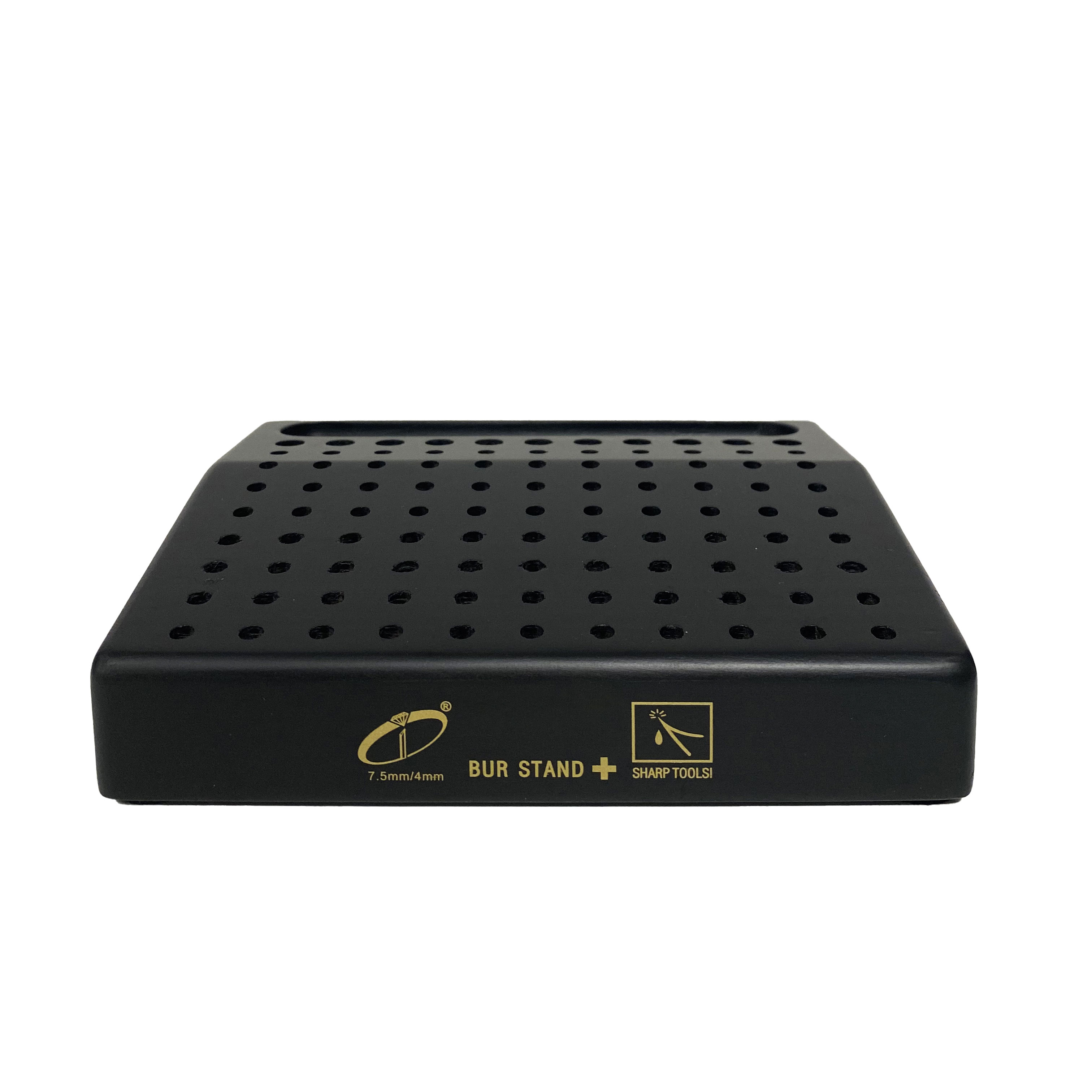 The drill stand has 8 rows of 11 drilled 4 mm holes (88 holes) each to accommodate bits and bits with a diameter of 3/32 "or 1/8" and an upper hole with 11 holes that goes to 7, 5mm is drilled to accommodate larger diameter objects.