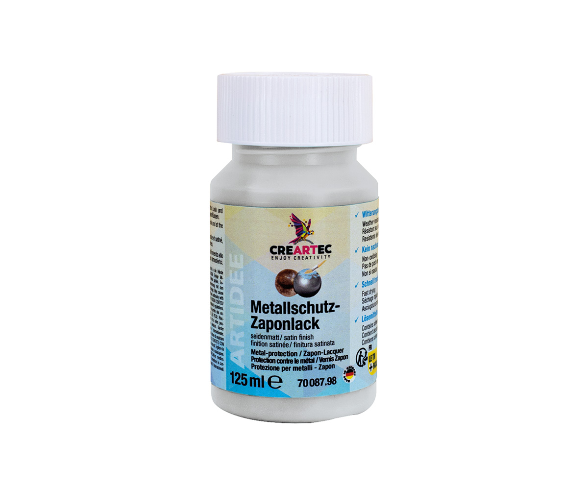 Metallschutz-Zaponlack verleiht Metallgegenständen einen edlen seidenmatten Look und bietet gleichzeitig einen perfekten Schutz vor Oxidation, Feuchtigkeit und Witterungseinflüssen.