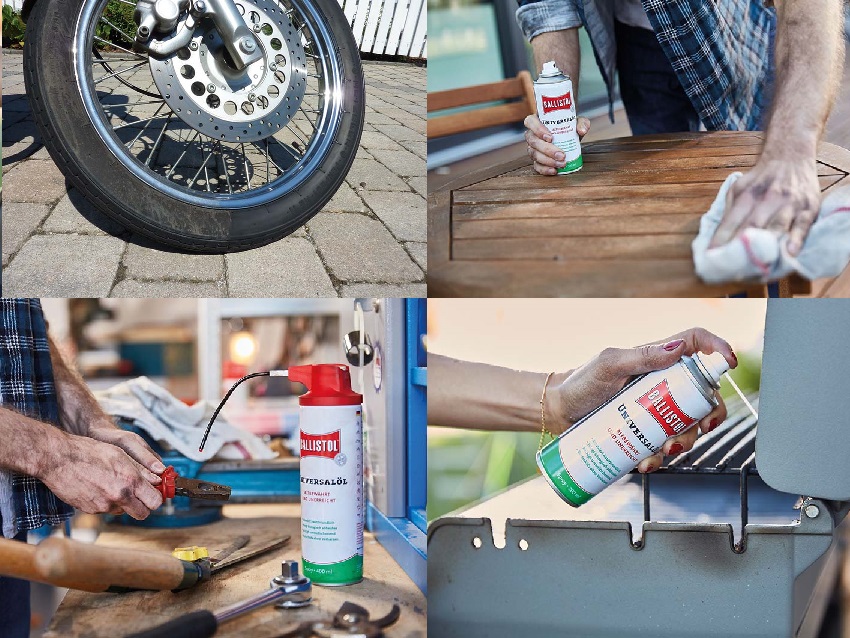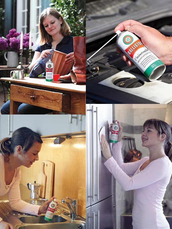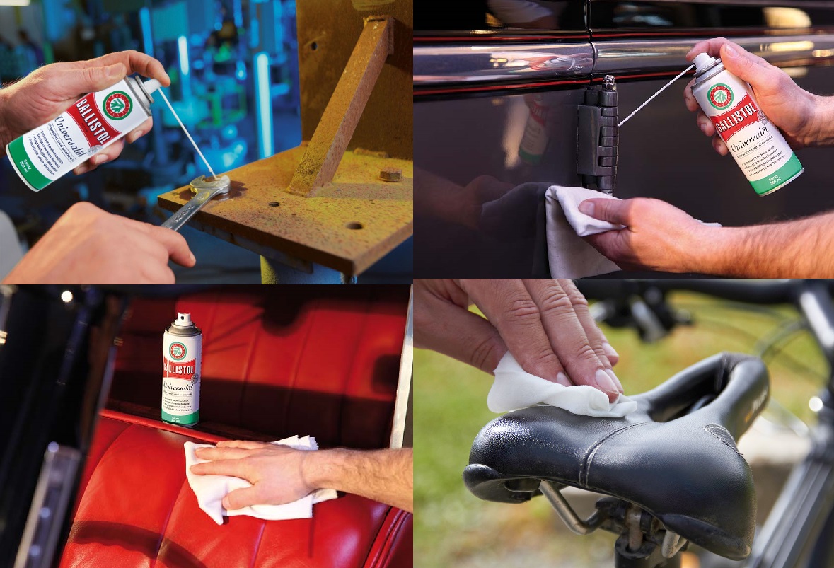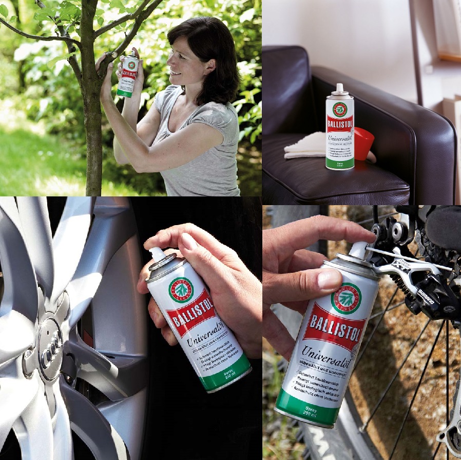 - Domaine d'application : pour l'entretien du métal, du bois, du cuir, du caoutchouc, du plastique, de la fourrure, de la peau et de bien d'autres choses encore dans l'artisanat, l'industrie, l'agriculture, le ménage, le jardin, pour les véhicules à moteur, la pêche, la chasse et le tir sportif.