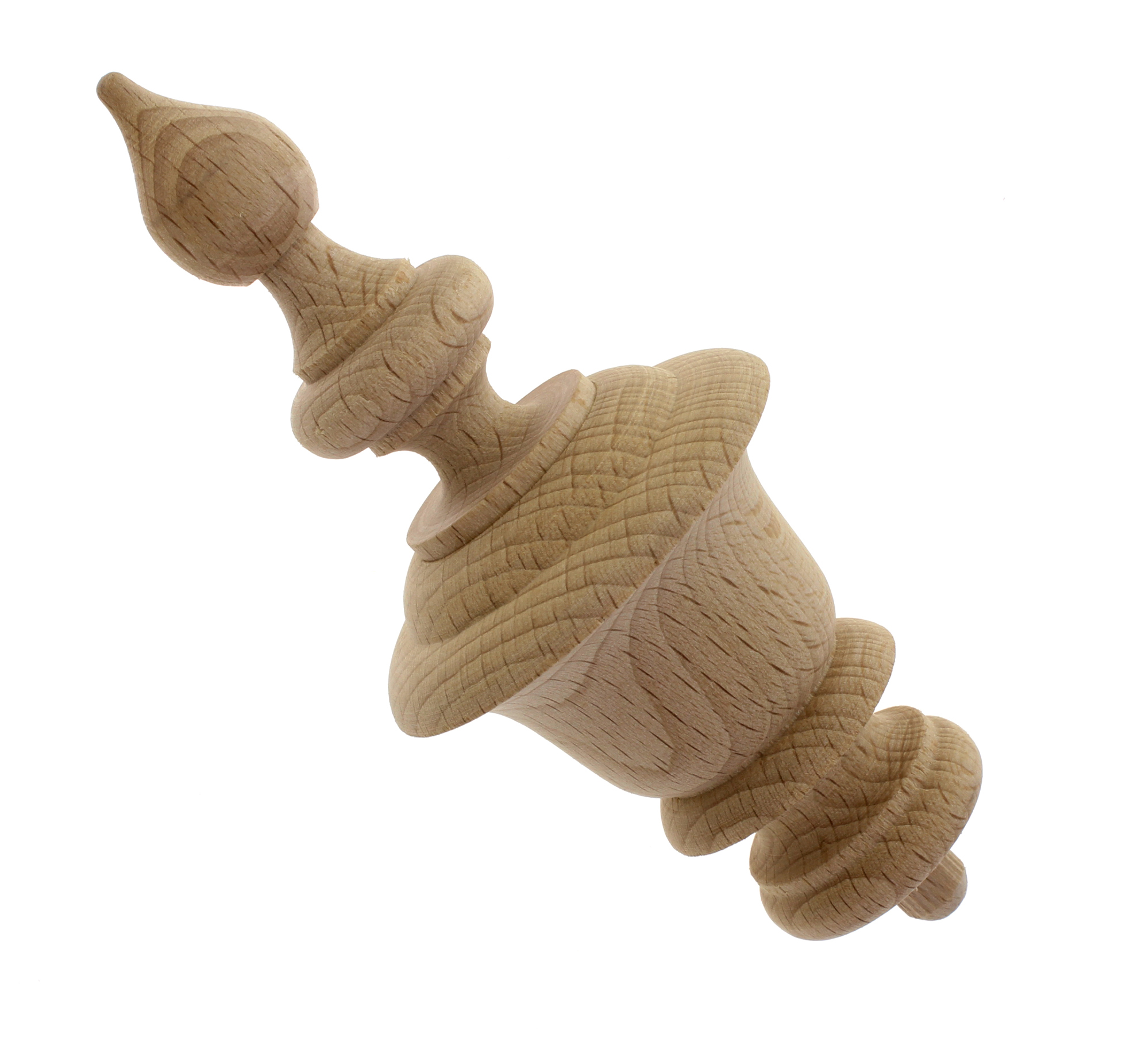 Tourné, non traité mais pré-humidifié. Peut être teint ou verni. Les pièces en hêtre peuvent être teintées sur "noyer". (Longueurs sans chevilles!)