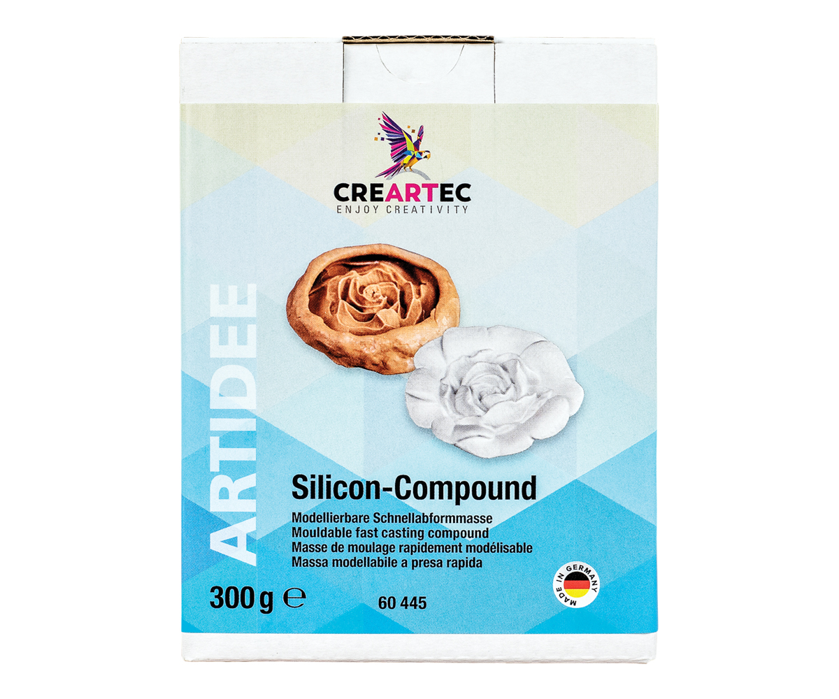 Modellierfähiges 2-Komponenten-Silikon in elastisch weicher, hochviskoser, knetbarer Zusammensetzung.