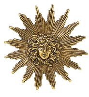 Mit Sonnenmotiv, Messingguss. Auch als Pendelscheibe geeignet. Ø 63 mm, ca. 8 mm hoch.