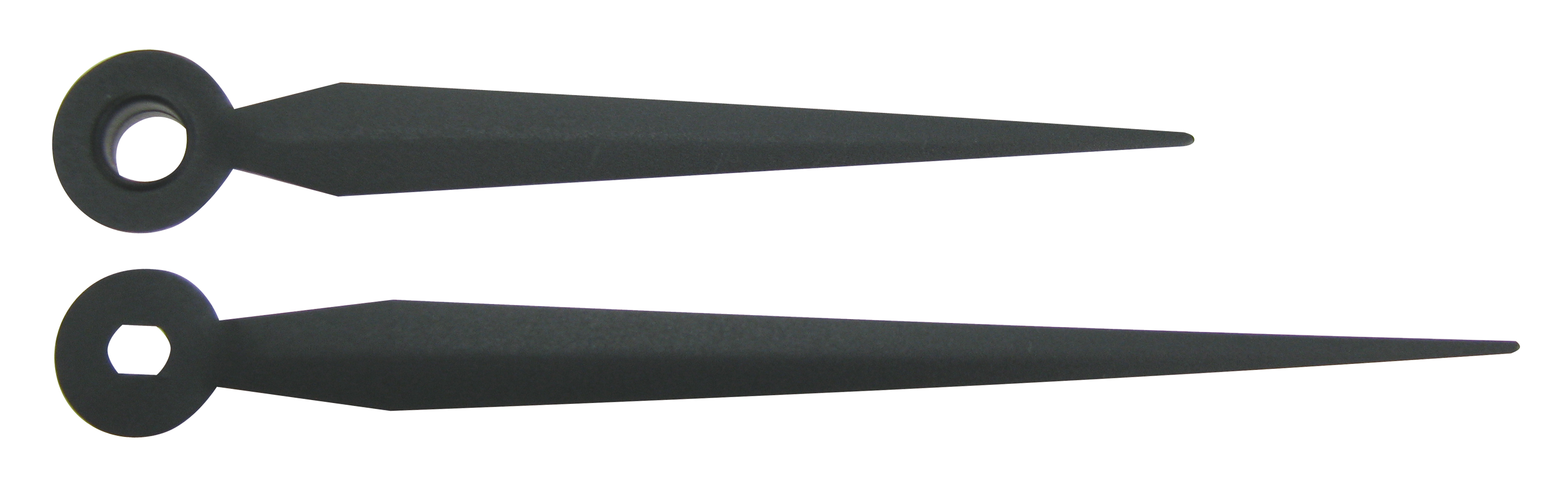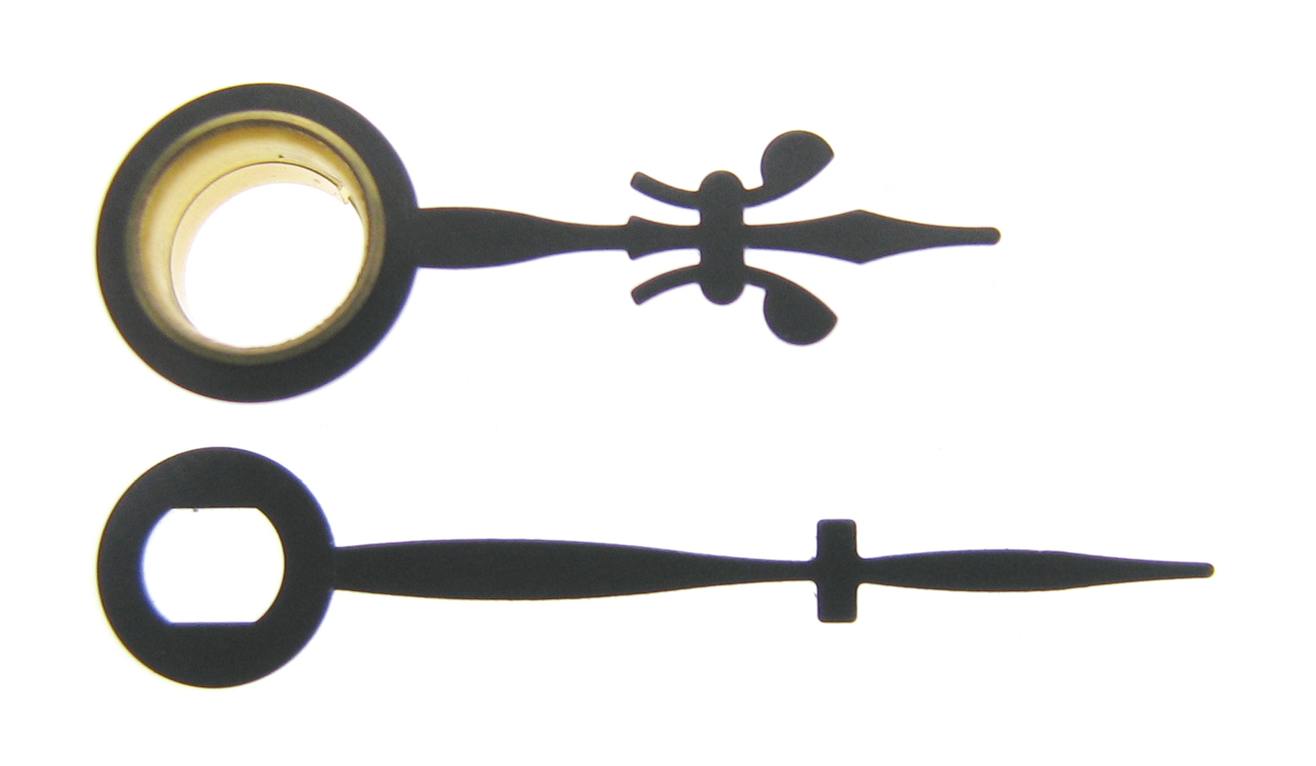 Bij bijzondere/zware wijzers (b.v. staal en messing wijzers met een lengte van meer dan 110 mm) is het aan te bevelen de robuuste uurwerken "WK", "GK" of "FT". Onze veer-, ketting- en snaaruurwerken kunnen zonder probleem met alle wijzers uit kolom 3 van de (blader) catalogus gebruikt worden.