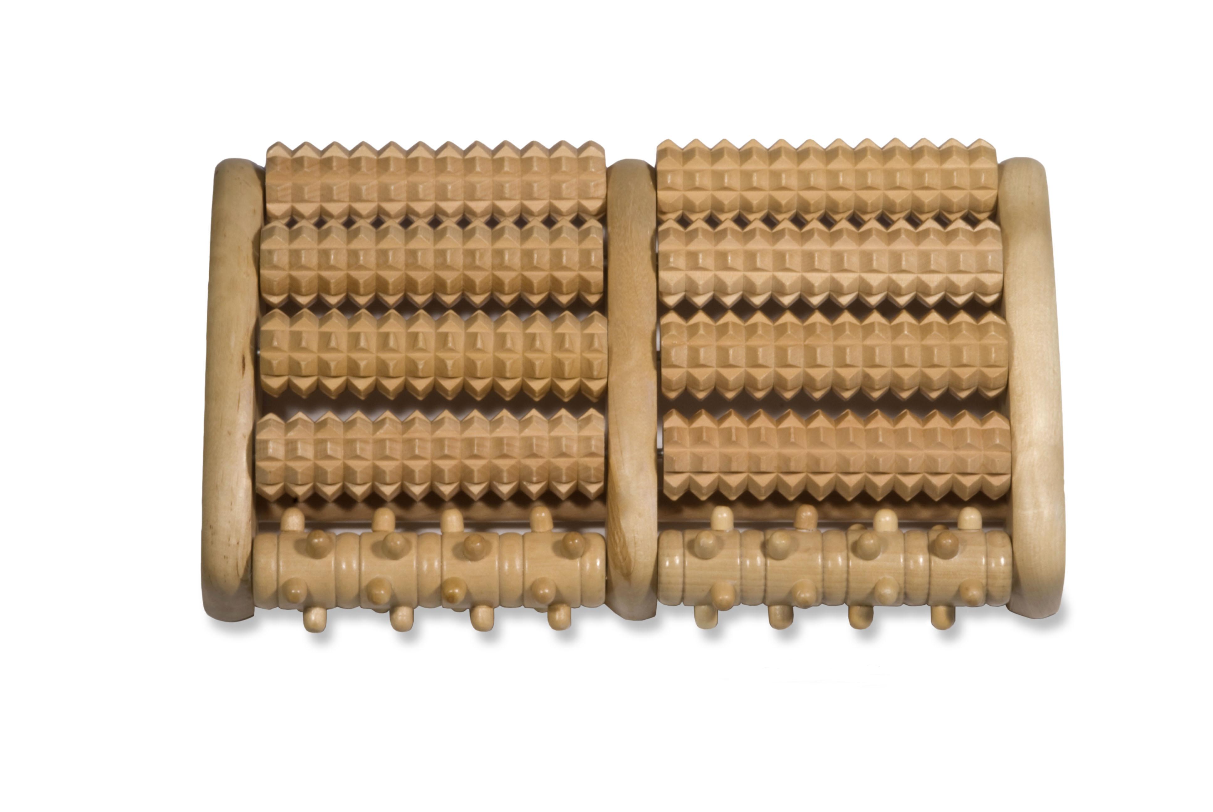 Stellen Sie ihn vor Ihren Sessel oder unter Ihren Schreibtisch: die kleinen Massagepunkte auf den Holzrollen stimulieren die Reflexzonen der Füße. Das kann helfen, die Durchblutung anzuregen und das Wohlbefinden zu fördern.