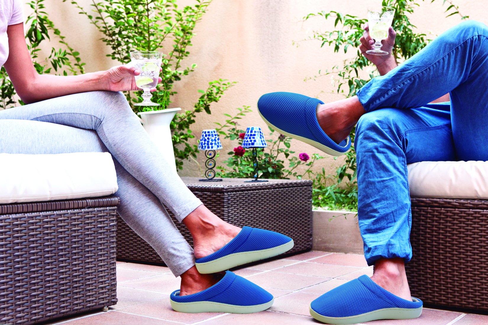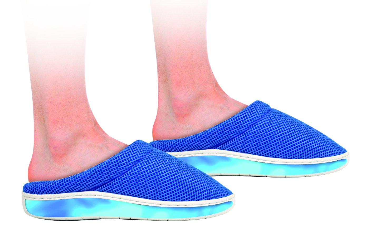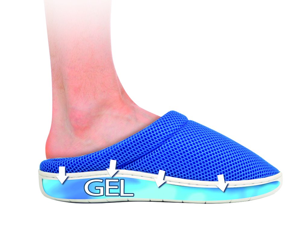 Die Außenseite besteht aus atmungsaktivem Netzgewebe, die Innenseite aus besonders weichem und kühlendem Material. Diese Slipper können beim Gehen und Stehen den entstehenden Druck auf Ihre Füße abmildern. Die Gelsohlen passen sich an Ihre Füße an und verformen sich nicht.