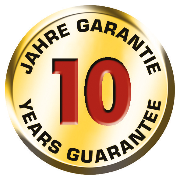 Der Hersteller gibt eine Garantie von 10 Jahren.