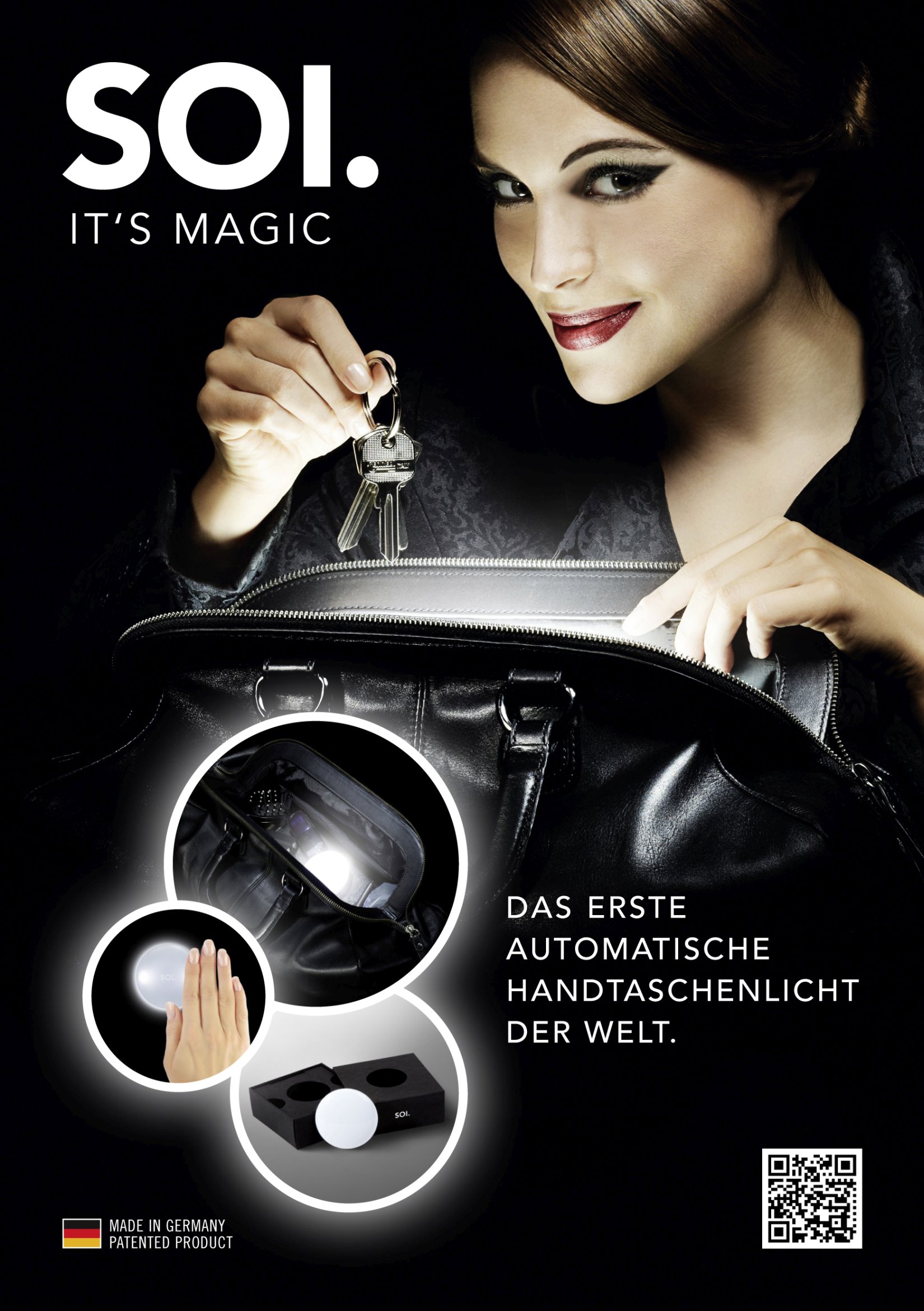 Ein automatisches Handtaschenlicht - clever, weil zeitsparend und automatisch. SOI reagiert nämlich auf Ihre Hand - und geht auch von alleine wieder aus.