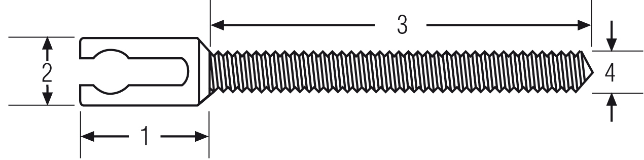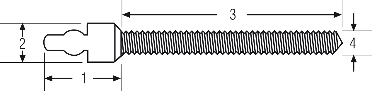 Aufzugwellen-Oberteil positiv, Gewinde Ø 0,90 Gewinde Länge 1,20 Ansatz Ø 1,10 Ansatz Länge 1,40 mm