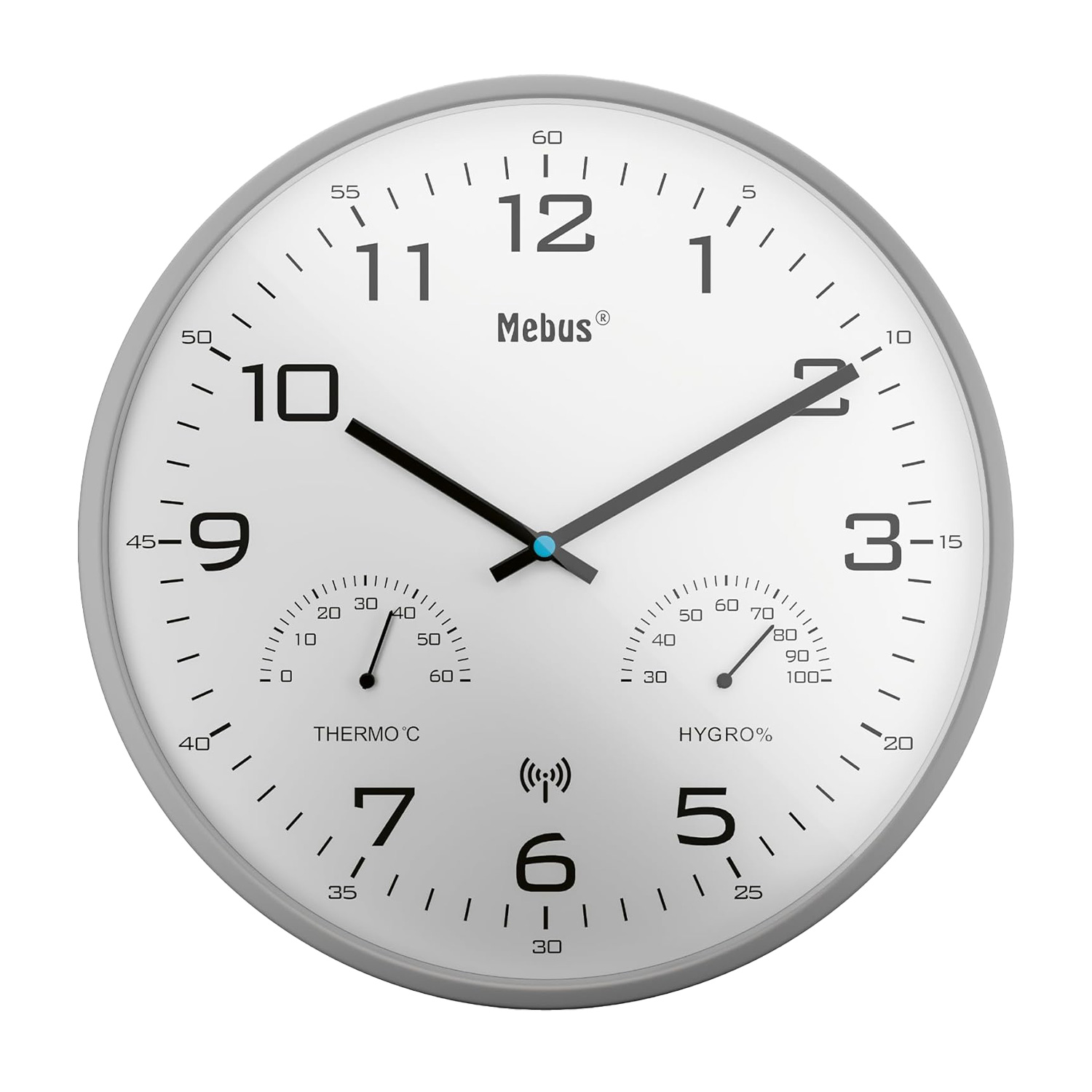 Funk-Wanduhr mit Thermometer/ Hygrometer, silber-grau