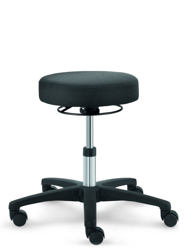 Der RF-Ergo Arbeitshocker in der Ausführung mit robustem, schwarzen Stoff.