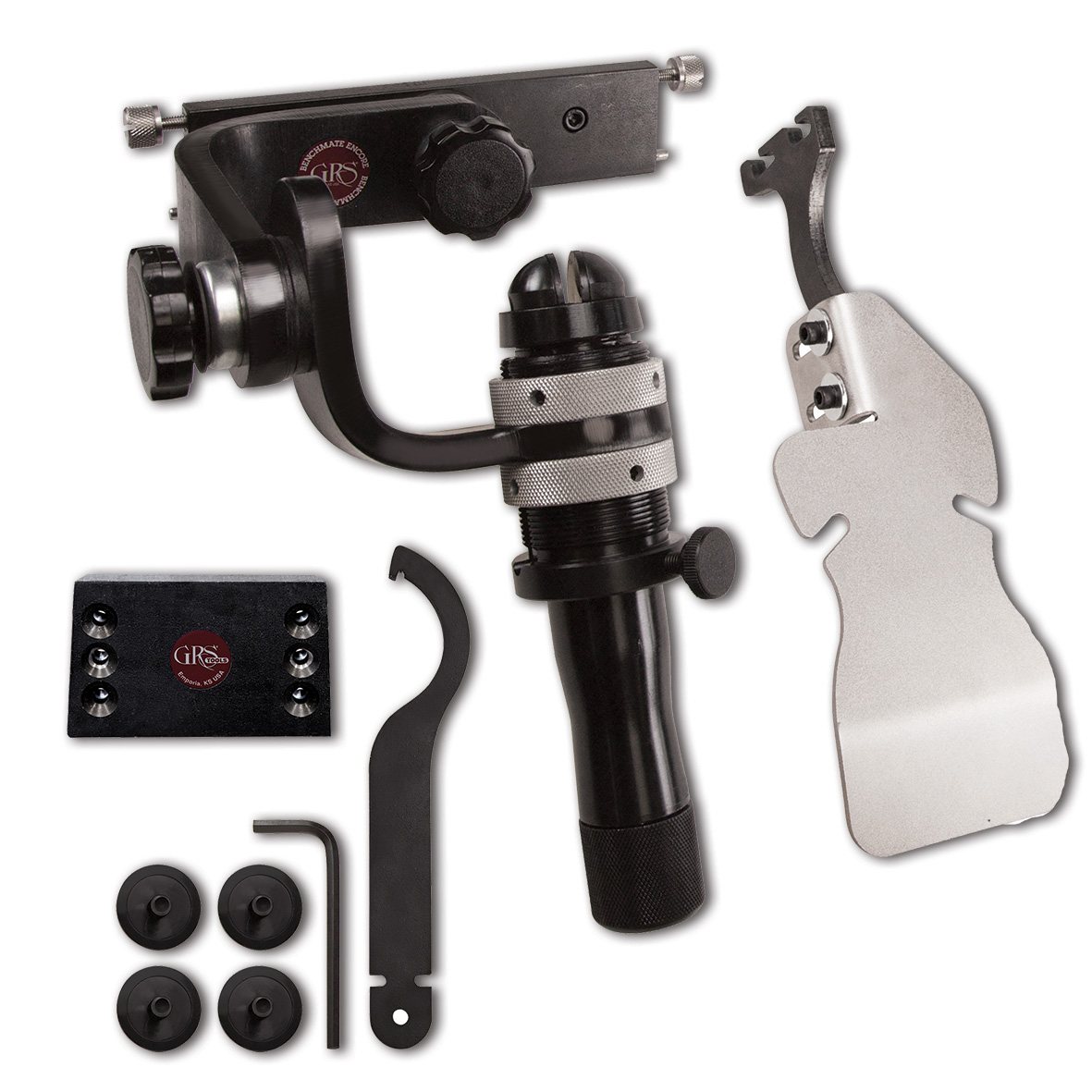 Werkstückhalter. Der BenchMate Encore QCX ist unter dem Mikroskop problemlos zu zentrieren und kann eingestellt werden, ohne das Werkstück aus dem Sichtfeld zu verlieren. Über zwei Bundringe mit Gewinde lässt sich die Höhe der Basishalterung schnell und einfach verändern.