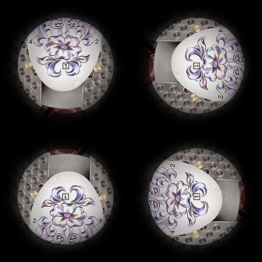 Diese von Sergej Manaenko erdachte Lösung zur Werkstückfixierung macht aus jeder Gravierkugel einen Positionierstift-Kloben. Das Schienensystem auf der Unterseite passt in die Haltebacken einer jeden GRS-Gravierkugel. Verschieben Sie es in den Haltebacken oder drehen Sie es, sodass Sie stets den perfekten Mittelpunkt unter dem Mikroskop finden.