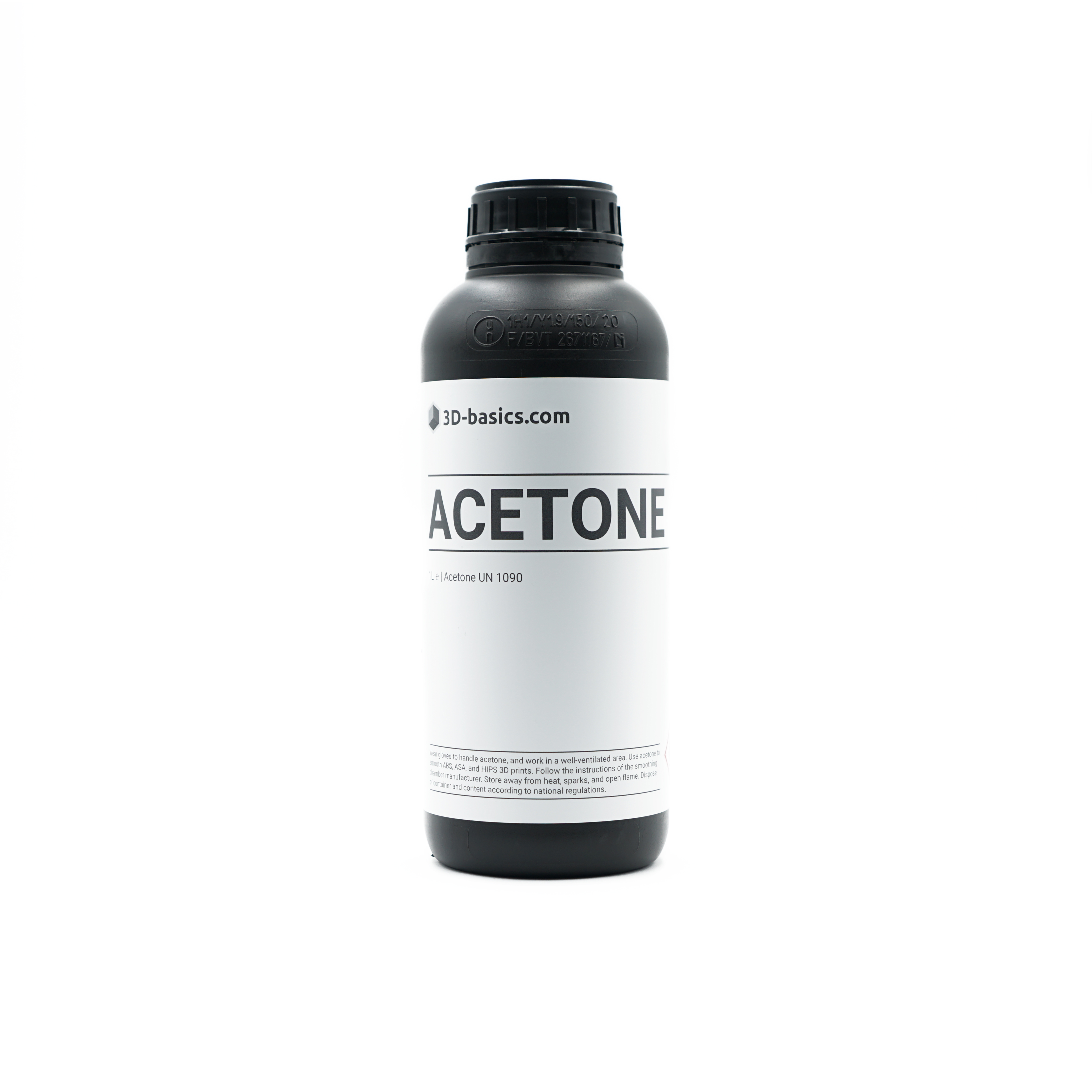 ACETONE ist eine hochflüchtige, entflammbare, farblose, klare Flüssigkeit zum Glätten bestimmter 3D-Druckmaterialien, mit speziell entwickelten Vorrichtungen wie dem Zortrax APOLLER. ACETONE kann zum Glätten von ABS-, ASA- und HIPS-Filamenten eingesetzt werden. Zusätzlich zu einem verbesserten Aussehen ermöglicht eine glättende Nachbehandlung mit dieser Art von Lösungsmittel die Verbesserung der mechanischen Eigenschaften des gedruckten Modells; die Verbesserung der Dichtigkeit der bedruckten Teile; die Vermeidung von Reibung an gleitenden oder beweglichen Teilen.