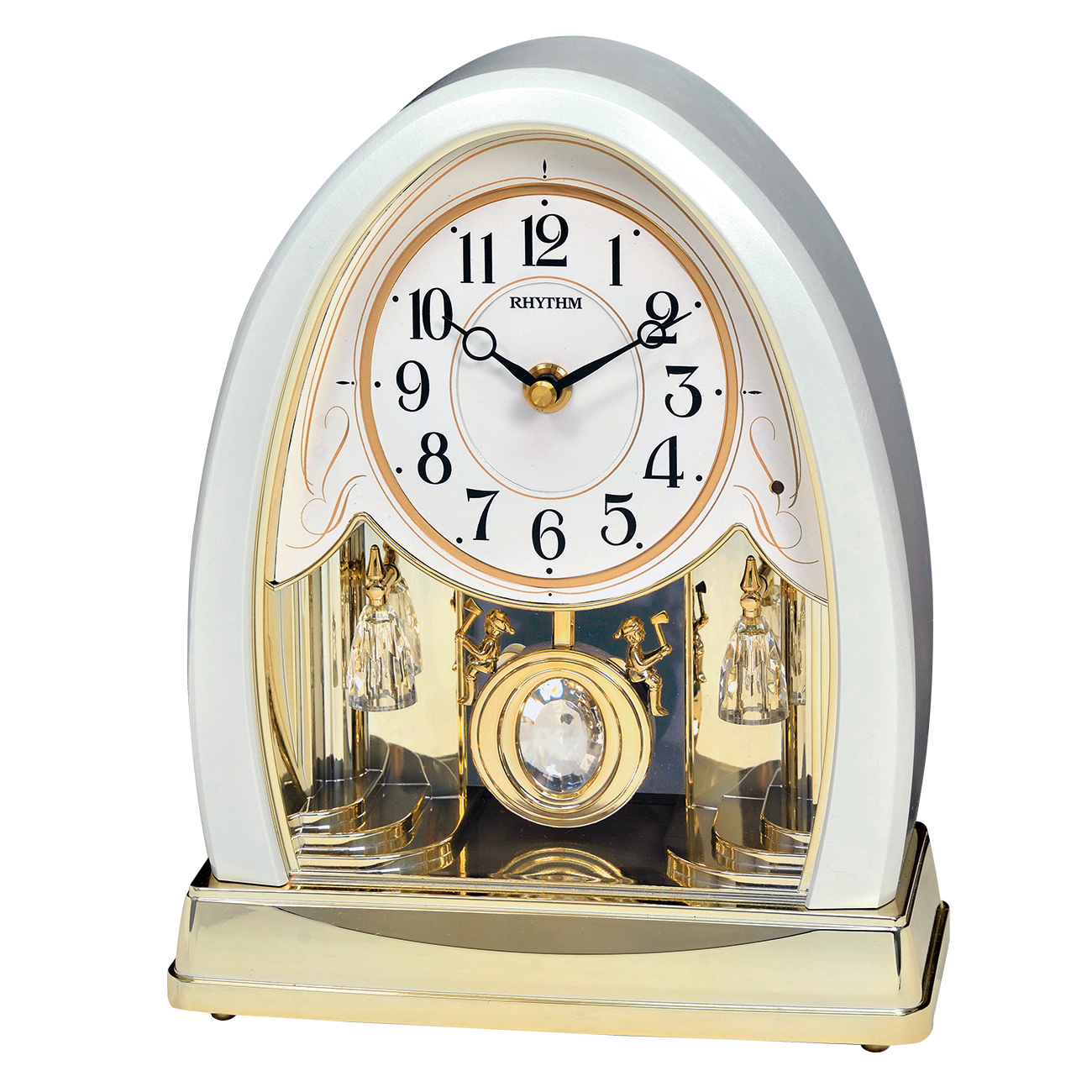 Product information "Rhythm 7641 white/ champagne table clock with melodies"