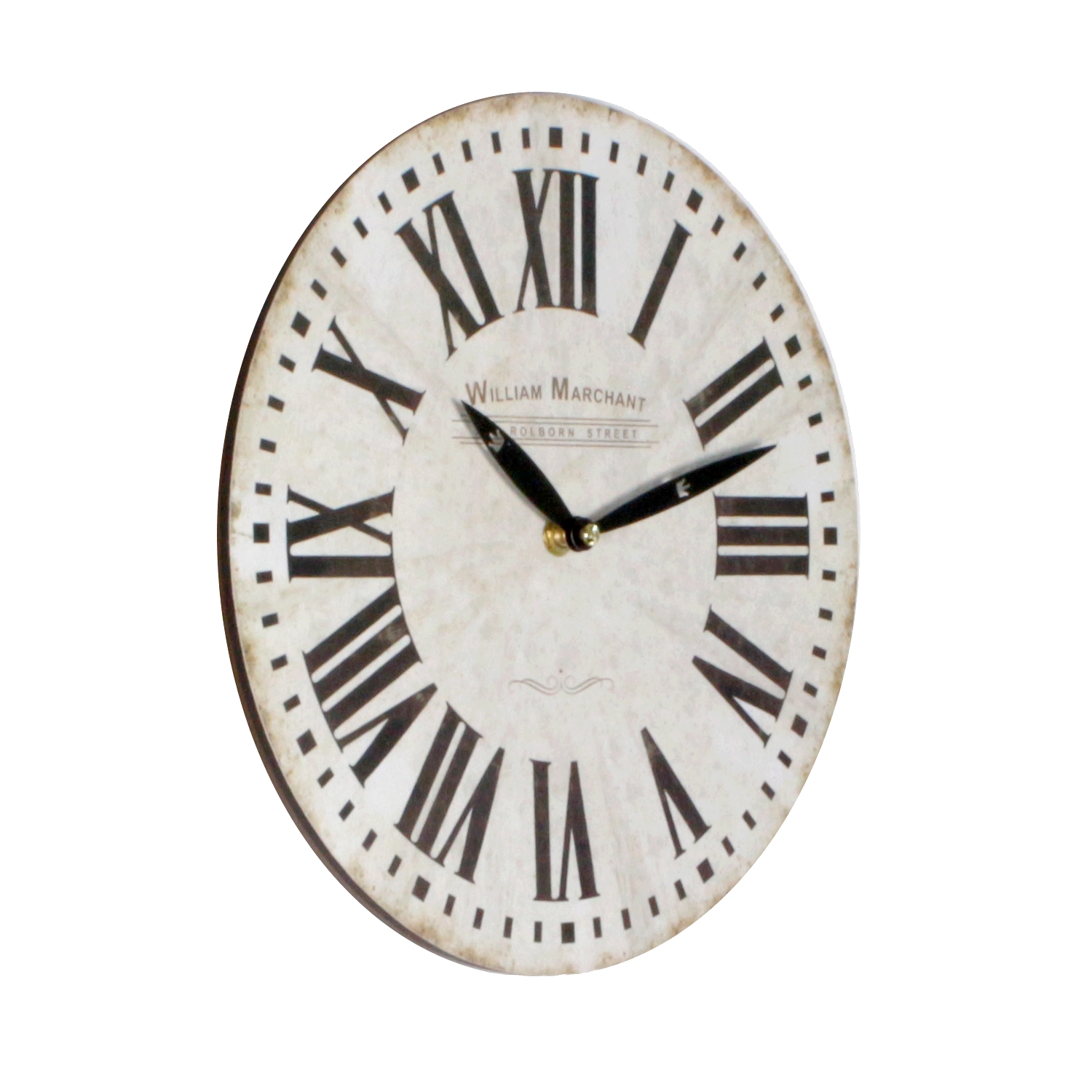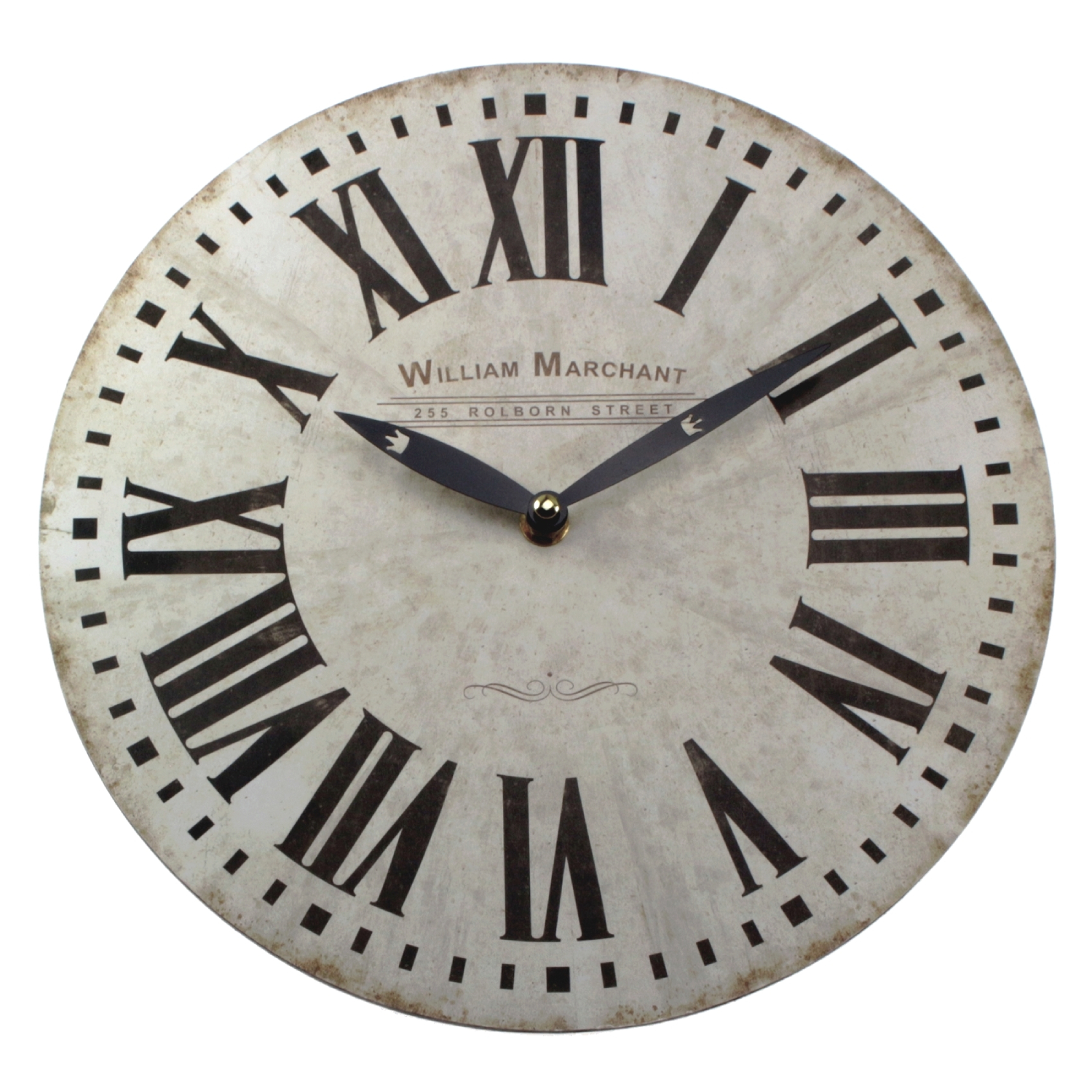The retro wall clock "William Merchant" is a real eye-catcher. The mottled dial in old white, together with the nostalgic Roman numerals, underlines the popular shabby style of the 20th century! The watch comes with black leaf-shaped hands and a stamped-out crown.