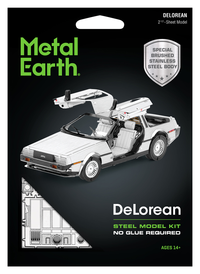 The legendary Delorean was manufactured from 1981 to 1983 by The DeLorean Motor Company in Belfast, Northern Ireland, for the American market. This elegant, angular car was fitted with gullwing doors and an unpainted body made of brushed stainless steel. It was immortalized as the DeLorean time machine in the Back to the Future series of films. Just like the original, the model is made of brushed steel.