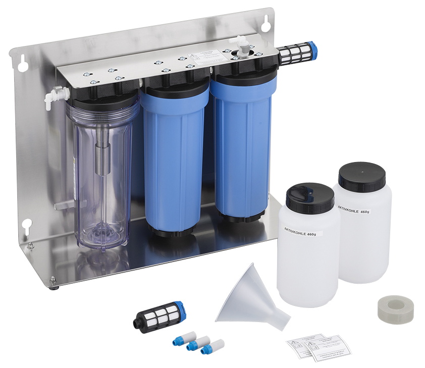 If the exhaust air from the Elmasolvex VA cannot blown to the outside, this unit offers the option of filtering the solvent vapours. Includes: 1 filter unit 1 activated carbon 2 stickers 1 replacement filter 1 PTFE tape 1 hopper
