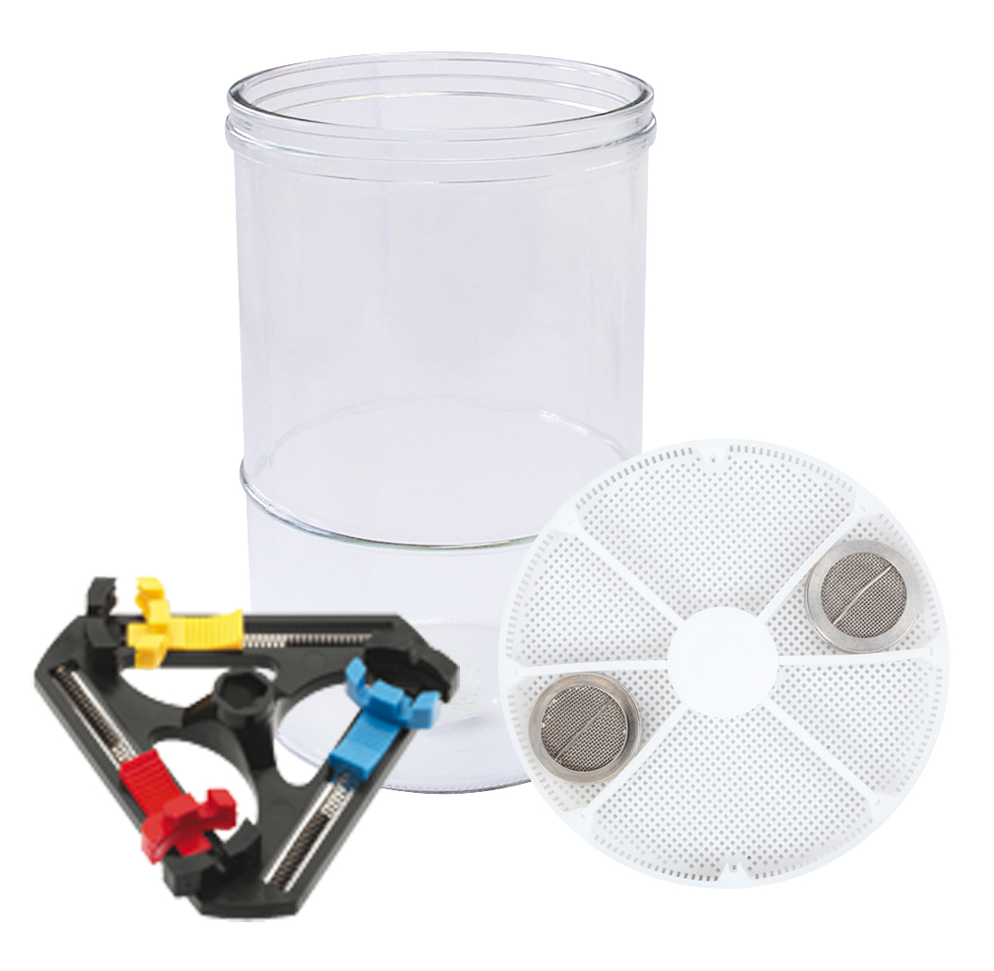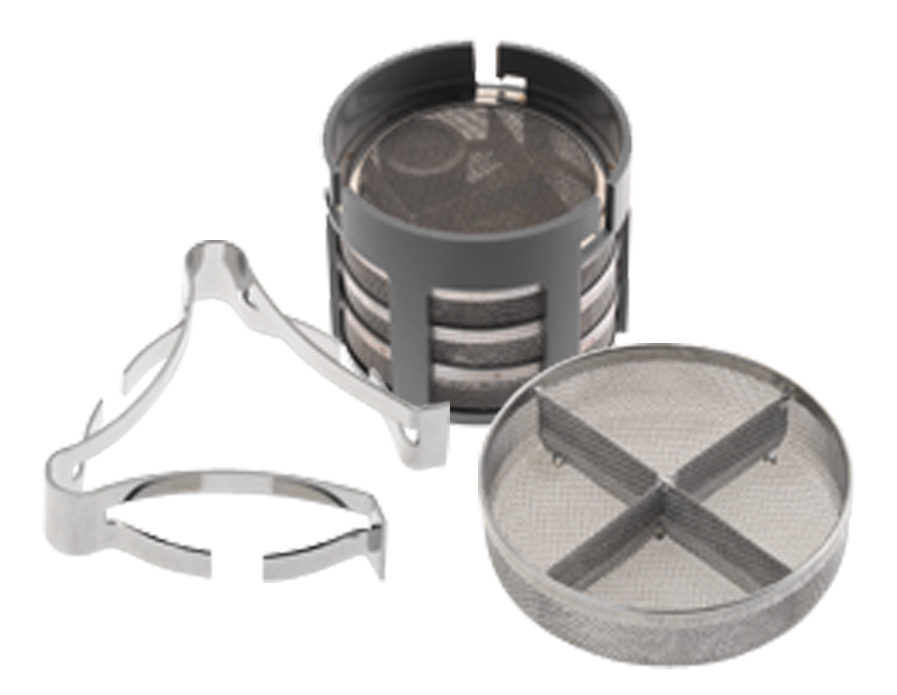 Includes: 1 basket frame 5 baskets, dia. 64 mm 2 cleaning baskets 20 mm with lid