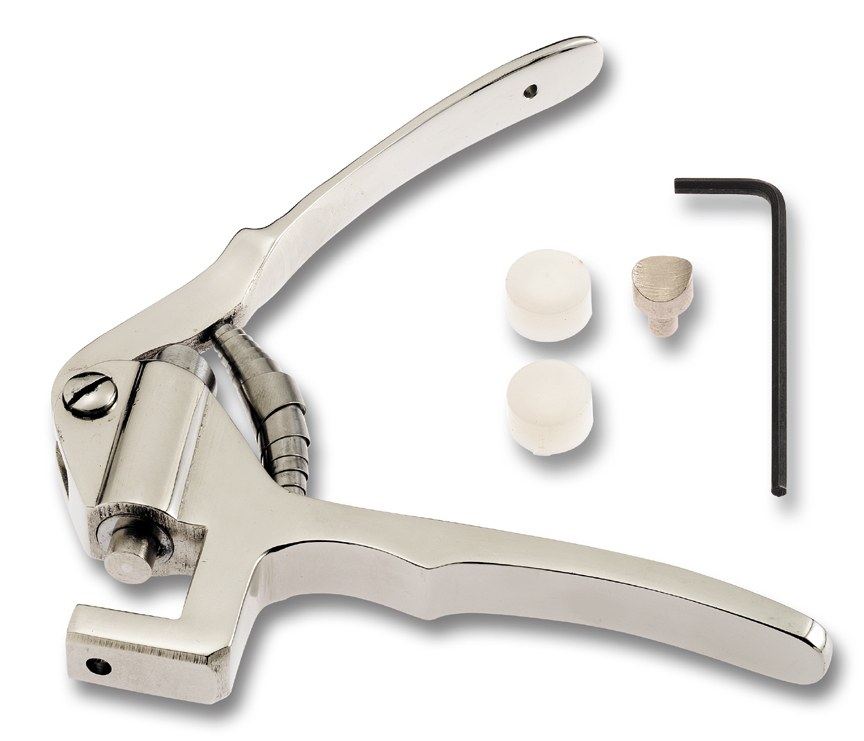 For easy embossing of the degree of purity of jewellery, with 1 holding stamp each (metal and plastic) with flat and concave surface.