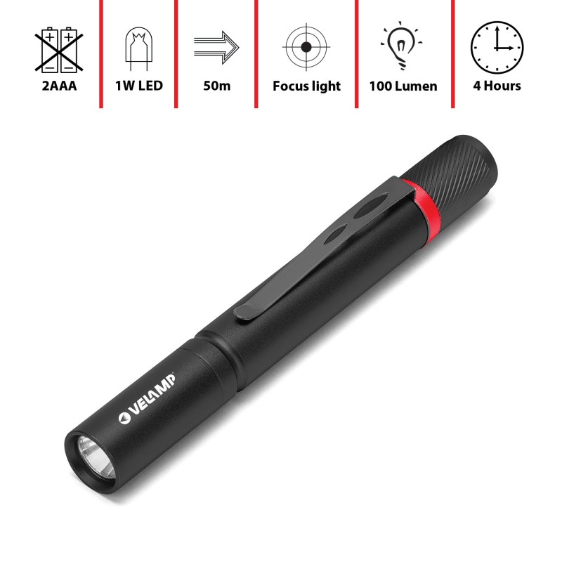 The small and handy LED pen light impresses with its optimal housing proportions. The pen-sized lamp is perfect for illuminating hard-to-reach places or narrow openings. The low weight and compact dimensions mean that the lamp can always be carried in a shirt or trouser pocket.
