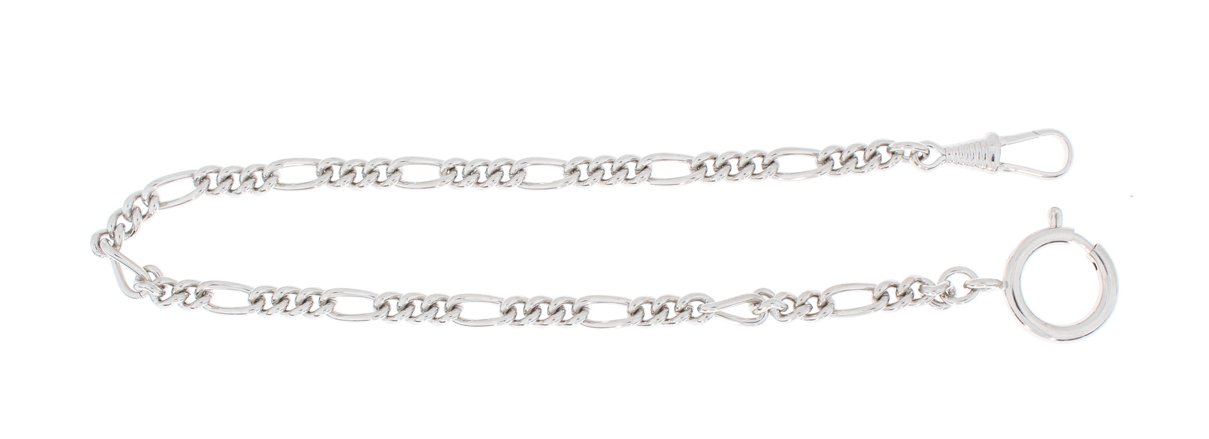 Pocket watch chain, Figaro curb, round, length approx. 30cm, with snap hook and spring ring clasp. Made in Germany.