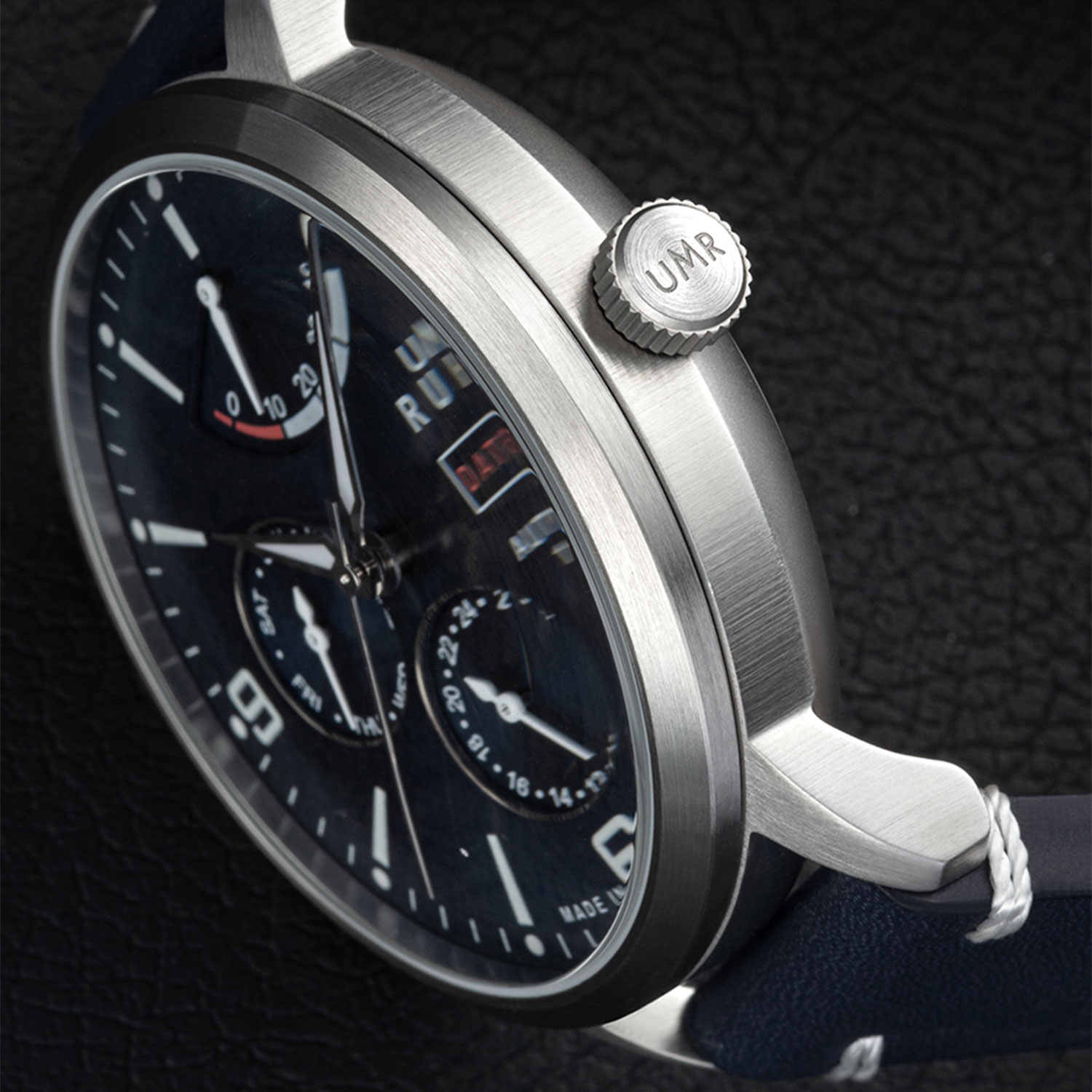 • Blue leather strap