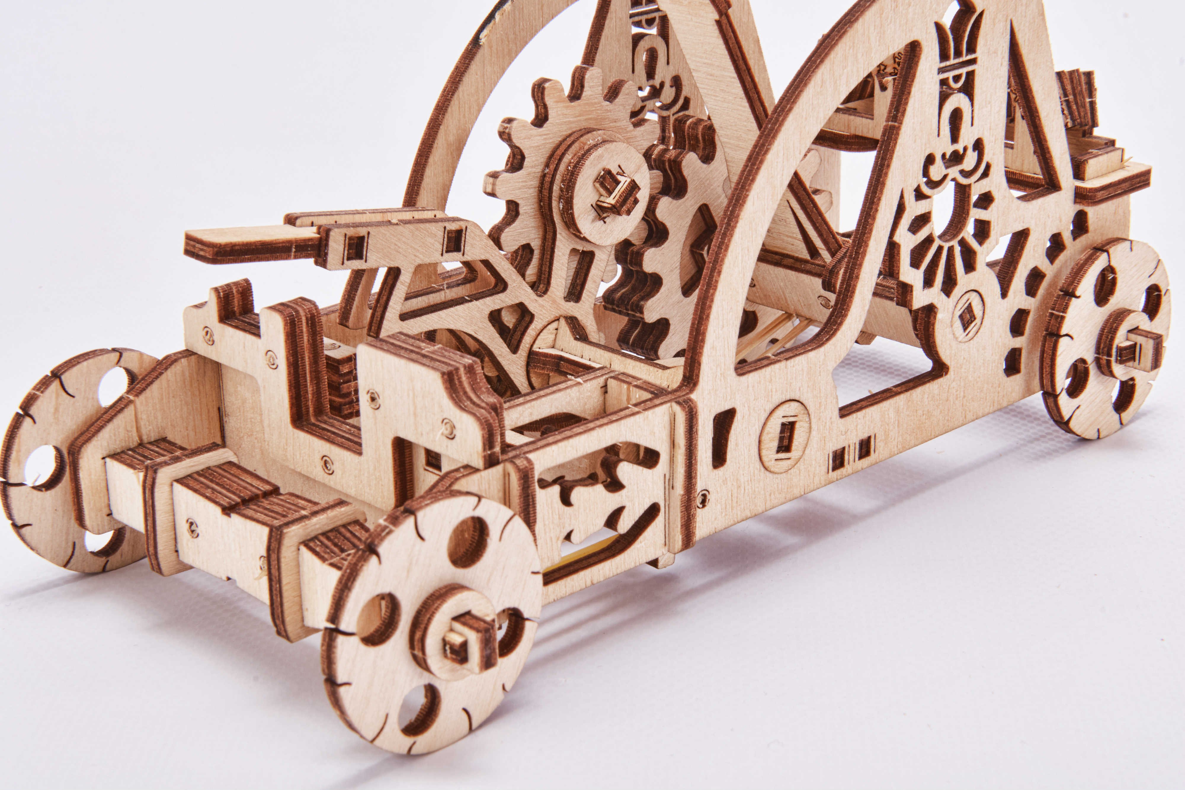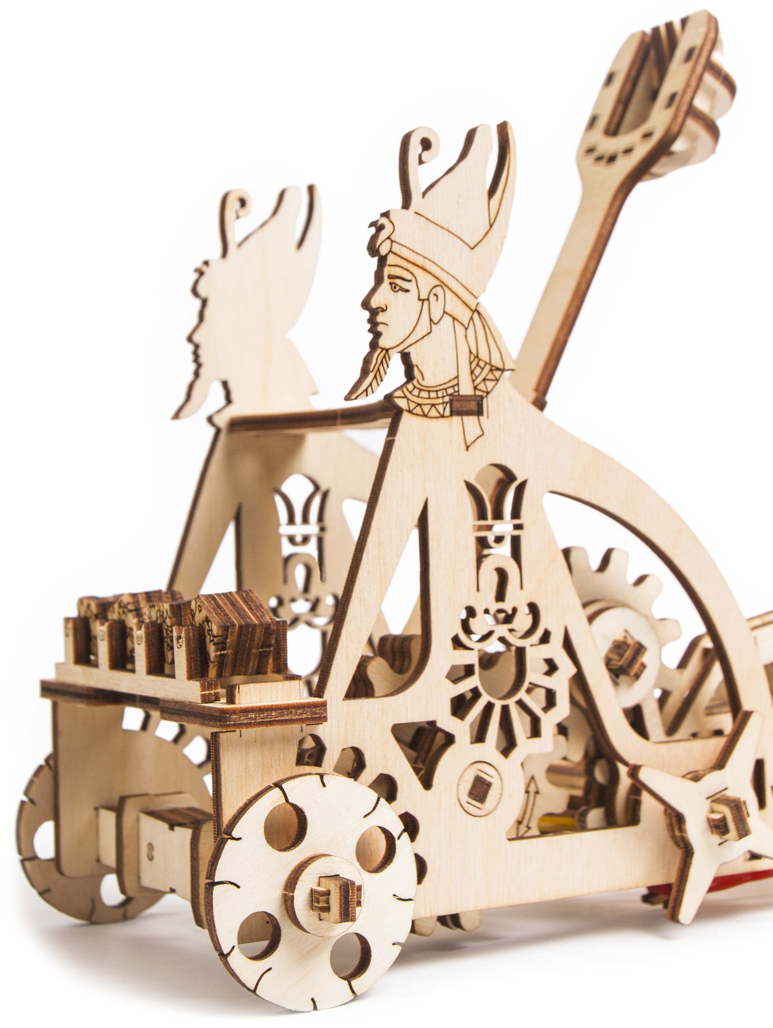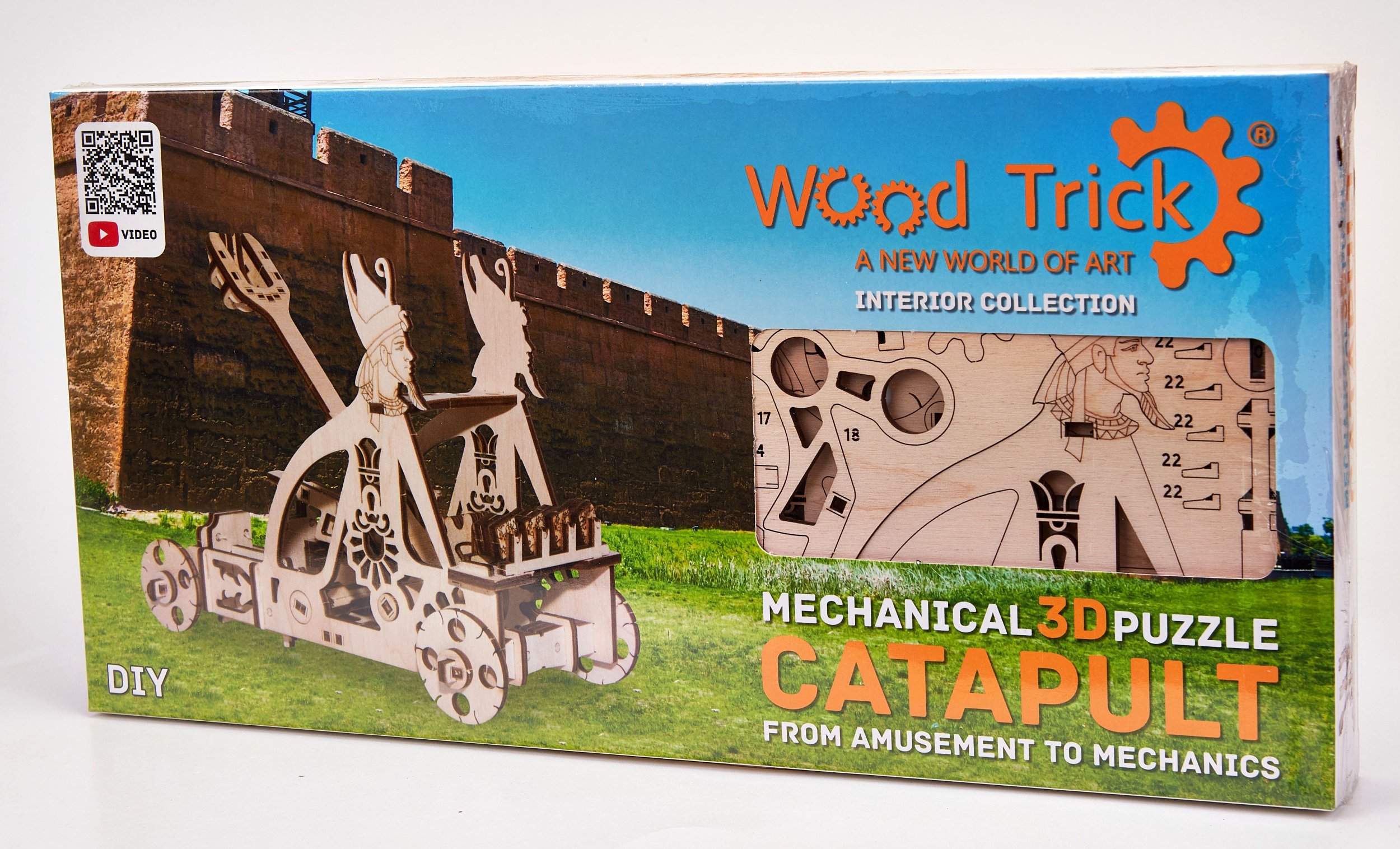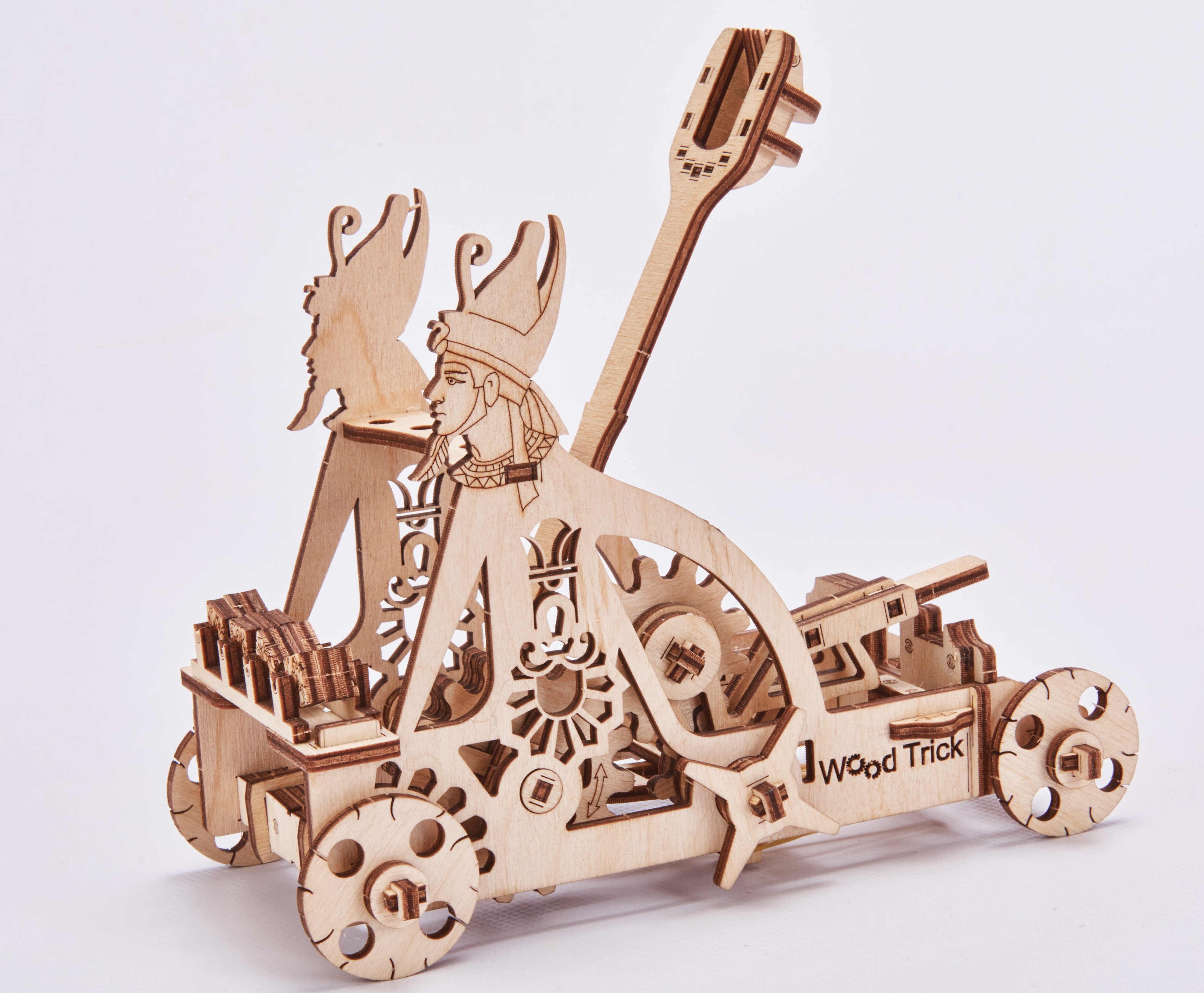 La catapulte était l'arme à longue portée la plus puissante de l'Antiquité et du Moyen Âge. Avec de nombreuses pièces mobiles et un mécanisme de projection entièrement fonctionnel, la catapulte de Wood Trick fait revivre la fascination de cette machine de jet.