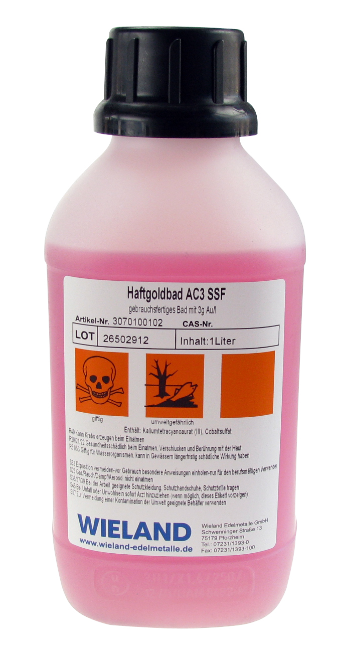 Gebrauchsfertig. Mit 1 g Feingold, cyanidhaltig.