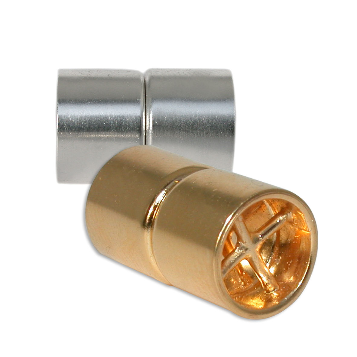 Markante Magnetschließen in Zylinderform weisen neben ihrer charakteristischen Optik ein hohes Maß an Praktikabilität auf. Sie halten die Enden von Halsketten zuverlässig zusammen und sind demnach relevante Komponenten in der Gestaltung vieler Schmuckstücke. Damit Sie für jedes anfallende Reparatur-Projekt die passende Schließe auf Lager haben, finden Sie hier diverse Modelle für alle Fälle.